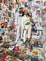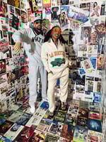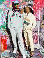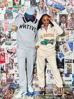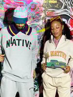 A super clean quarter zip 80/20 cotton/poly. A great feel and even better look. Industrial metal zipper built to last. Female model is wearing a size medium. The joggers are wide leg or you can use the drawstring on the inside bottom to scrunch them.